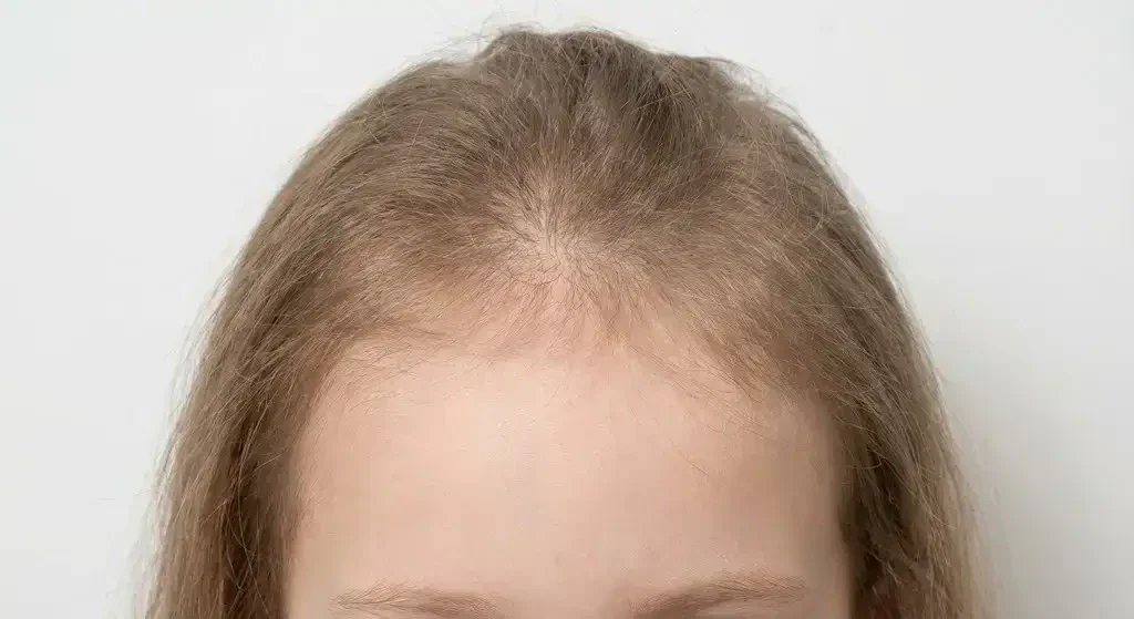 This is the type of hair fall that parents notice 6 to 10 weeks after a child has had a high fever, dengue, viral illness, surgery or a significant emotional shock.