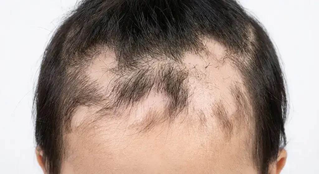 Alopecia areata is an autoimmune condition where the bodyтАЩs immune system mistakenly attacks its own hair follicles. The hair falls out in patches. The scalp underneath looks completely normal, no scales, no redness, no itching.